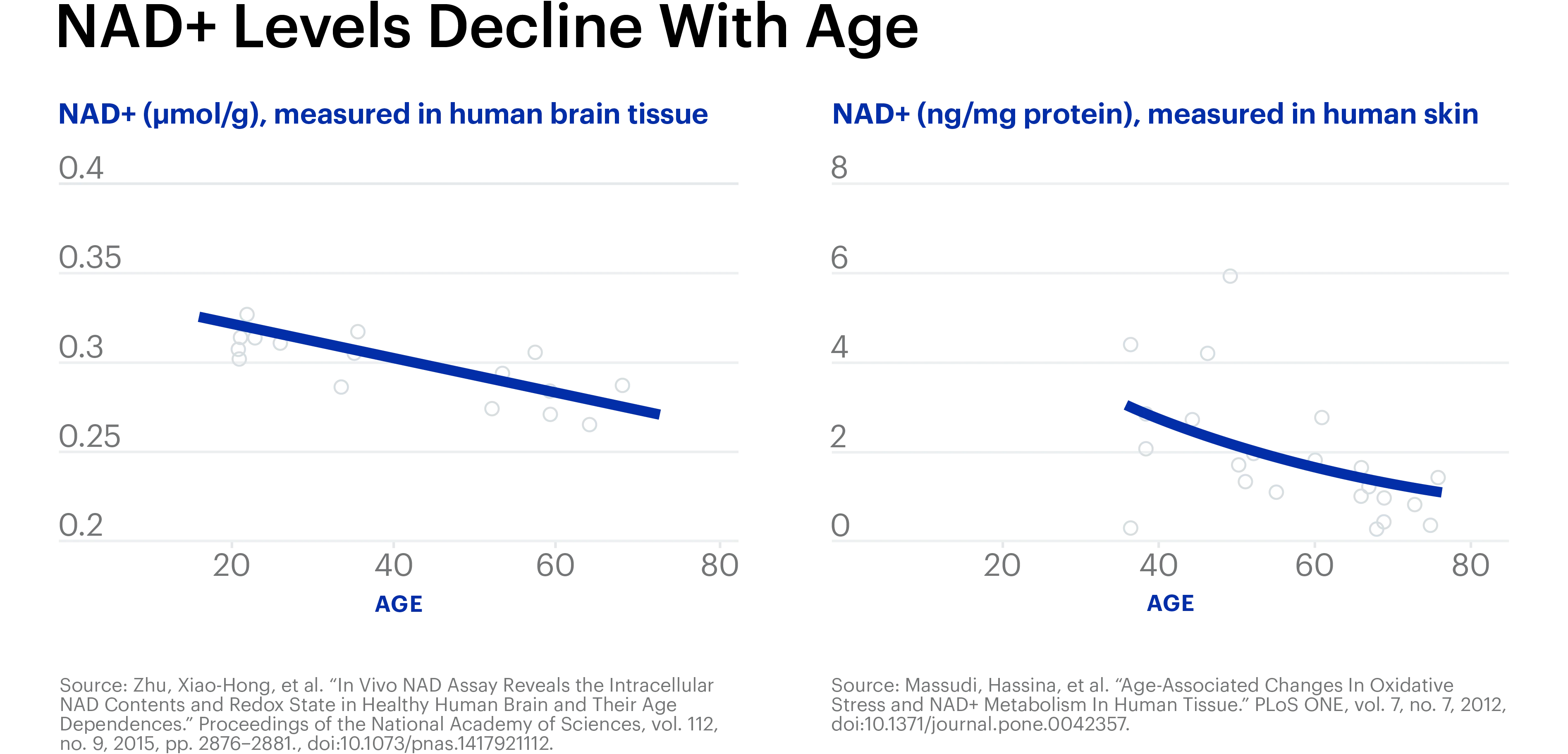 A recent study by researchers at the University of New South Wales has revealed a significant connection between aging and NAD+ levels. They found that NAD+ levels can decline by up to 50% between the ages of 40 and 60.